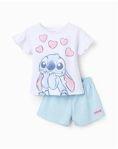 Детская пижама для девочки, 100% хлопок, с изображением Ститча и оборками, белый/синий