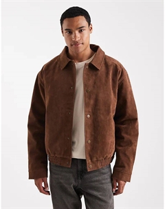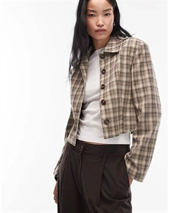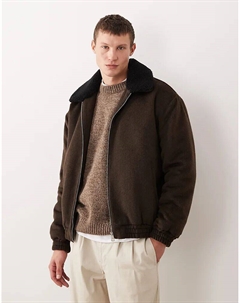 Куртка Харрингтон из шерстяной имитации с узором «ёлочка» коричневого цвета