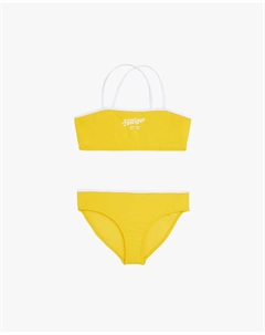 Купальник для девочек без бретелек с логотипом на груди, зеленый