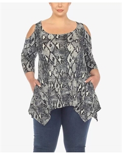 Туника большого размера с пуговицами спереди и узором пейсли, черный