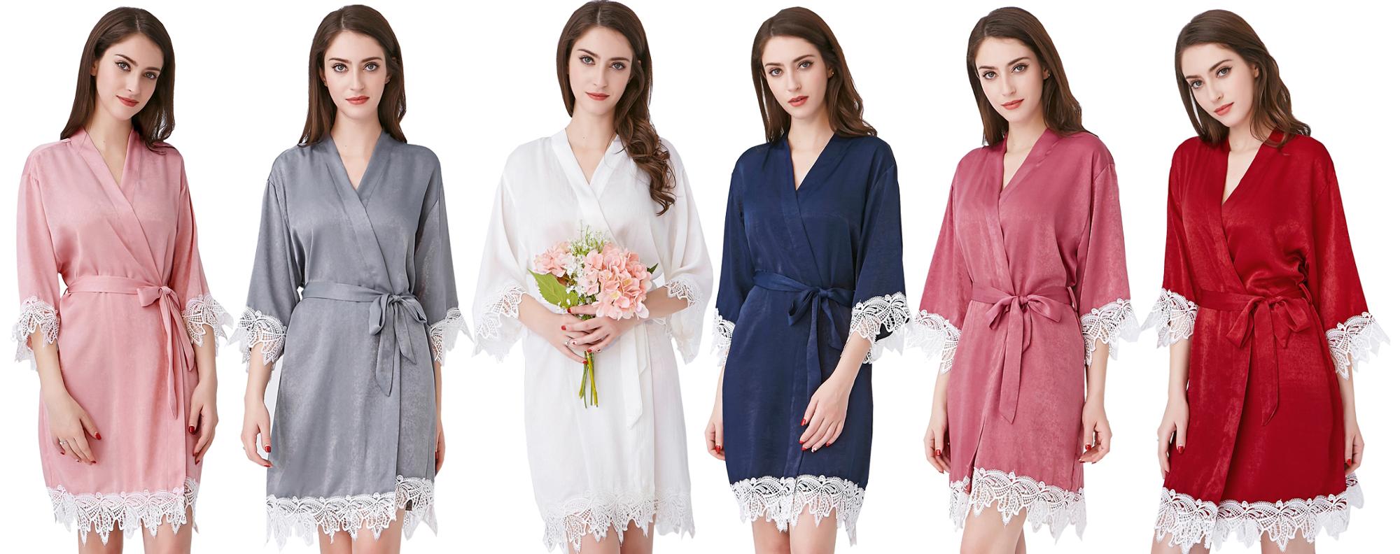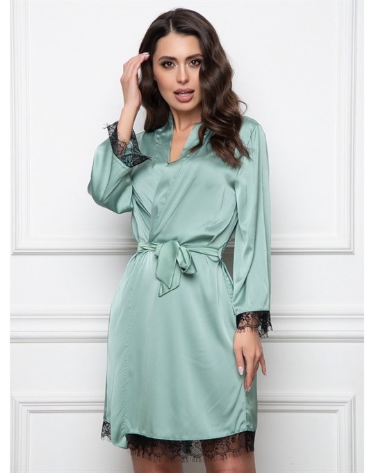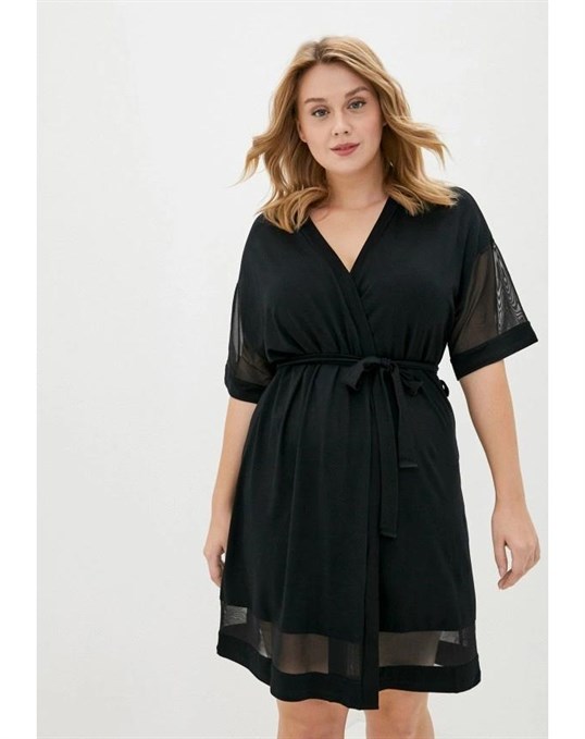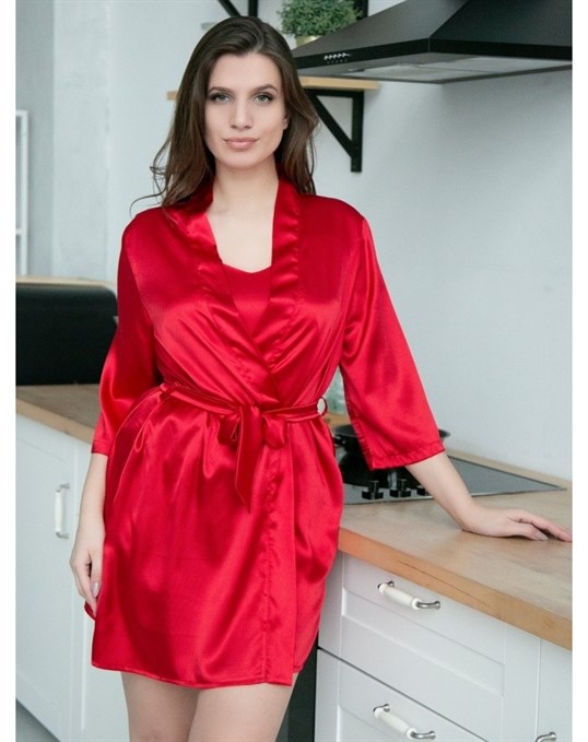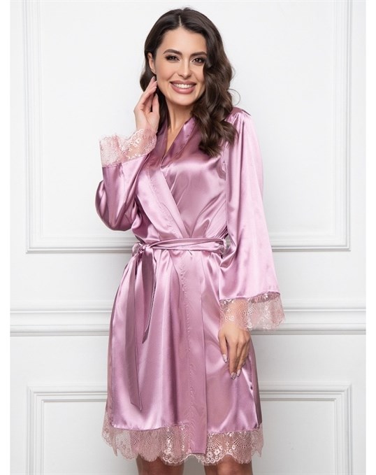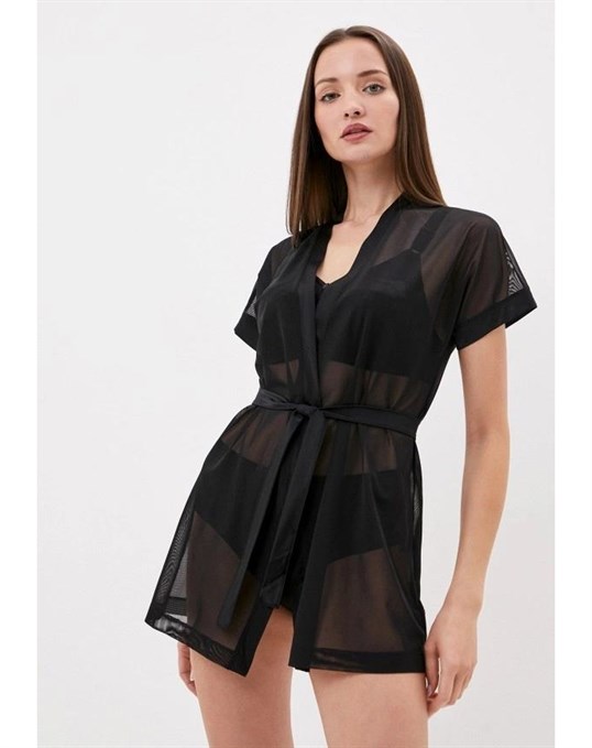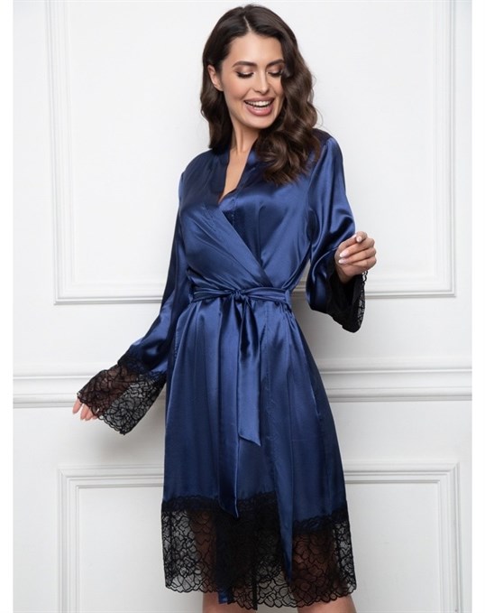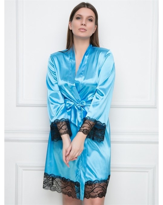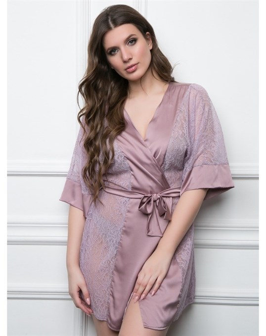 - По типу кимоно – в таком женском пеньюаре отсутствует воротник, обязателен запах, завязывающийся пояс широкий или средней ширины, преобладает длина «мини» или «макси», предпочтительными являются традиционные восточные узоры или геометрические рисунки, яркие цветовые мотивы, расширенные книзу рукава, декоративные сборки, выгодно обрисует любой женский силуэт;