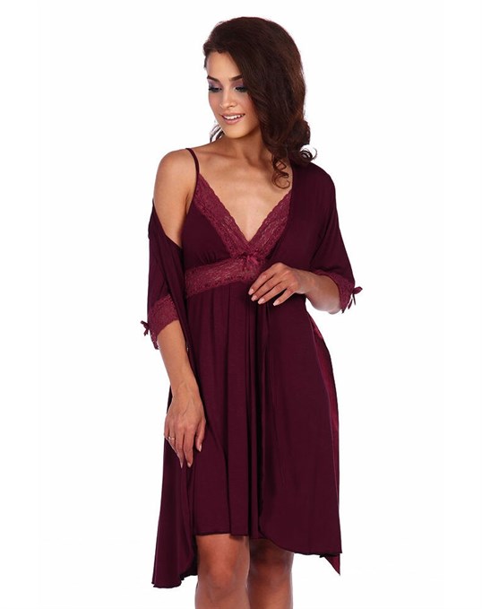 - Комплекты с женским пеньюаром и халатиком, выполненными в одном стиле – символ универсальности и комплексности, одна из наиболее популярных модификаций среди девушек разных возрастов и параметров. В этом случае сам пеньюар обычно воздушный и тонкий, максимально открывающий плюсы соблазнительных женственных изгибов, халат может быть на завязках или пуговицах, на тонком, широком или среднем поясе, с контрастами или в однотонной композиции;