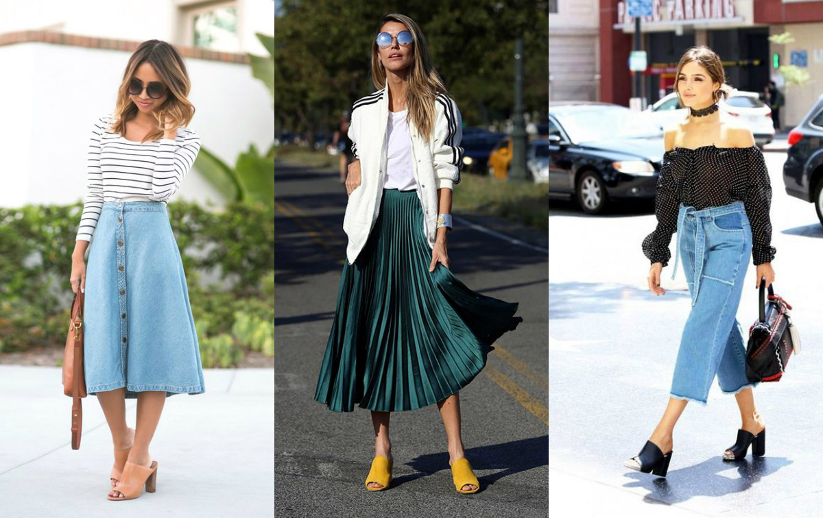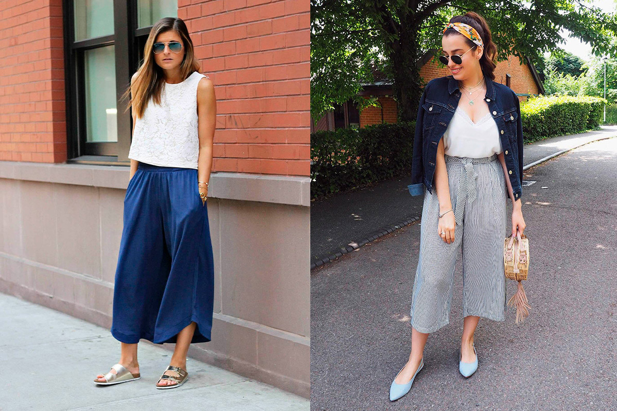 В этом случае важно помнить о балансе пропорций: если мюли закрывают ступни, то образ уравновесит голая щиколотка. Вопреки мнению, что кюлоты с высокой талией добавляют объёма в ширину, создают невыгодный силуэт и укорачивают рост, они действуют с точностью наоборот. С помощью длины и лёгких материалов брюки добавляют лёгкость и расслабленность в любой наряд, что особо желаемо весной и летом. В качестве «верха» можно выбрать укороченные жакеты или классические пиджаки, топы с коротким рукавом или майки на бретелях, хлопковые сорочки или викторианские блузы с кружевом. Комплект с обычными брюками также будет смотреться удачно, но правило открытой щиколотки и здесь звучит актуально.