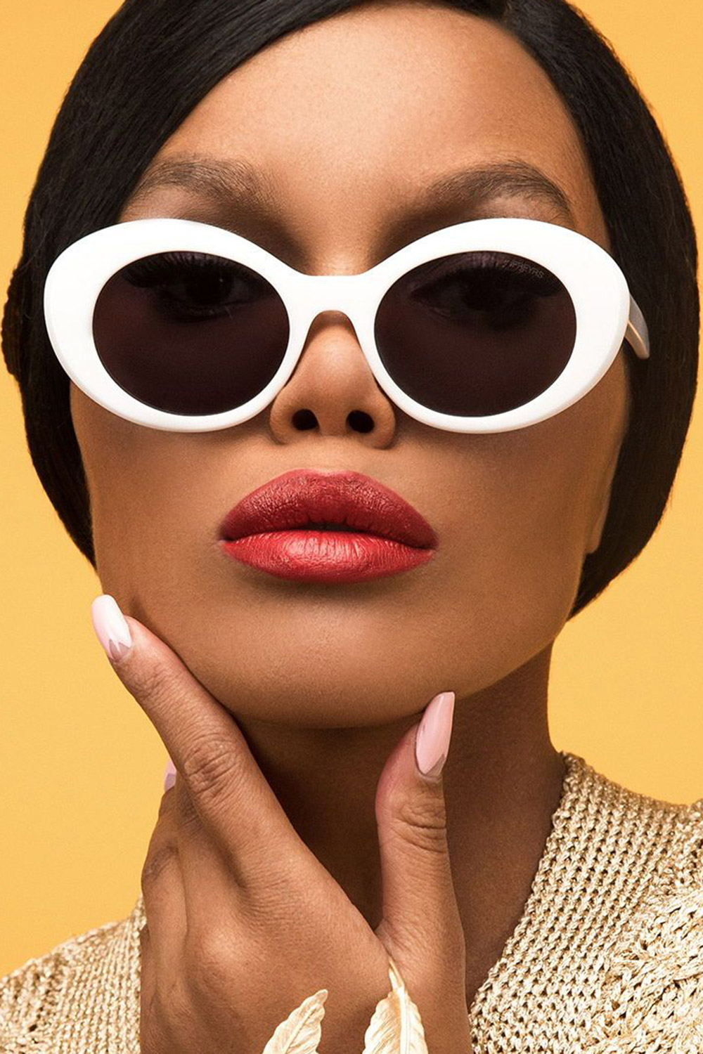Когда нужно добавить акцент, а красные «сердечки» не ваша тема, обратите внимание на ретро-детали. Брижит Бардо знала этот приём - в 60-е она сделала белые окуляры своей «фишкой». К ним в комплект подойдут винтажные жакеты, твидовые комплекты без рукавов, укороченные палаццо, полосатые логсливы и поло. Среди фасонов «вне времени» отметим варианты с очертанием овала или прямоугольника.