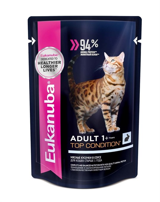 В полноправном рационном корме котам предлагается около 70% мясных изделий. Используется крольчатина, цыплёнок, телёнок, ягнёнок, индейка и даже дичь. Ещё 26% занимает бульон, а оставшиеся 4 процента приходятся на кашу из овса, риса, ячменя.