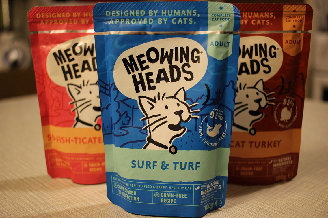 Влажный корм от немецкой компании на 80-85% состоит из мясных изделий. К мясу добавляются полезные ингредиенты – бобовые, овощи, обязательны пребиотики. Всё это заливается жидкостью. В Meowing вы не найдёте зерновых компонентов. Здесь напрочь отсутствуют химические составляющие и ГМО. Зато нашлось место полезным пребиотикам. Ранее кошачья еда выпускалась в виде консервов. Сейчас чаще можно встретить паучи.