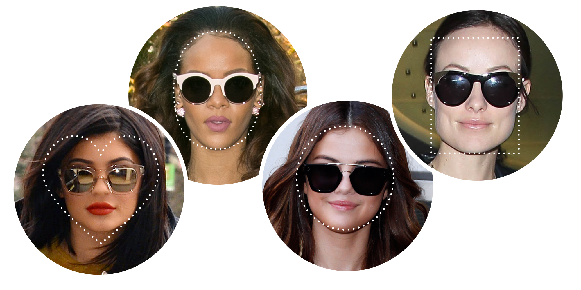 Такая форма более вытянута по вертикали. На ней здорово сидят «горизонтальные» модели, которые делают акцент на ширине (как «интеллектуальные» teashades). Для этой категории можно поискать непривычные очки: они укорачивают лицо, но такой эффект здесь полезен. Посетители фестивалей музыки часто носят «сердечки» или цветочные версии, которые также можно примерить. Узкие или спортивные sunglasses лучше оставить другим.