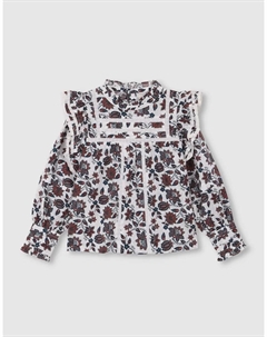 Детская блузка с цветочным принтом, оборками и бордовыми вышитыми лямками