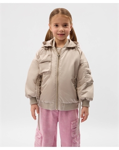Куртка-бомбер для девочки утепленная из влагостойкой плащовки бежевая