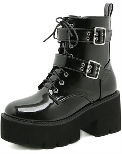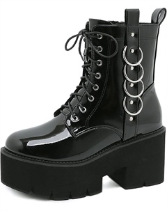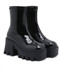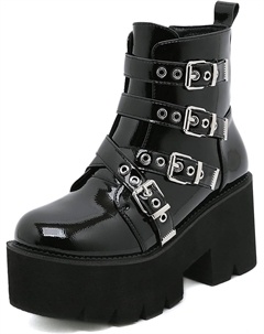 Женские готические черные массивные ботинки на платформе, готические ботинки с круглым носком и боковой молнией, панк-босоножки на высокой платформе и каблуке, Patent Black