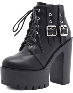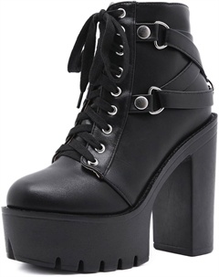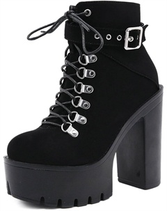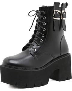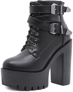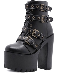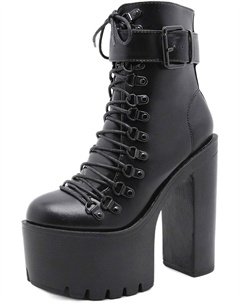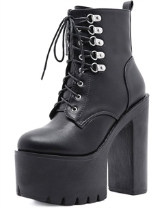 Женские готические черные массивные ботинки на платформе, готические ботинки с круглым носком и боковой молнией, панк-босоножки на высокой платформе и каблуке, Lace Up Black