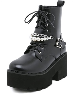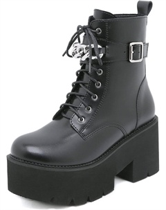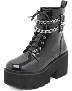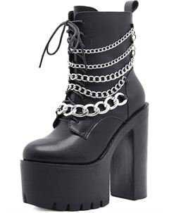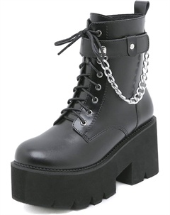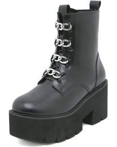Женские готические черные массивные ботинки на платформе, готические ботинки с круглым носком и боковой молнией, панк-босоножки на высокой платформе и каблуке, Chain Black