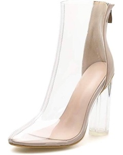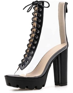 Женские ботильоны на массивном каблуке из прозрачного ПВХ с открытым носком, прозрачные босоножки с высоким каблуком, летние ботильоны с открытым носком на массивном каблуке, Black Clear 2