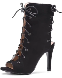 Женские босоножки с открытым носком на шнуровке, танцевальные туфли на каблуке, сексуальные летние ботильоны с высоким каблуком, туфли-памп с открытым носком, сандалии, Black 1