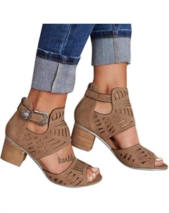 Женские босоножки с открытым носком, вырезами, на высоком массивном каблуке, с ремешком на щиколотке, летние, офисные, Brown