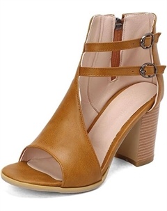 Женские босоножки с открытым носком, летние босоножки с пряжкой и вырезами на низком каблуке, нарядные босоножки с ремешком на щиколотке и задней молнией, A Brown