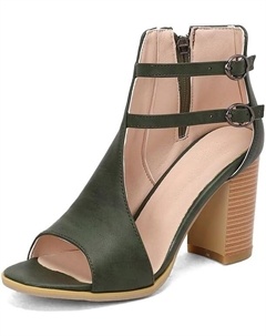 Женские босоножки с открытым носком, летние босоножки с пряжкой и вырезами на низком каблуке, нарядные босоножки с ремешком на щиколотке и задней молнией, Khaki