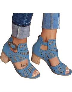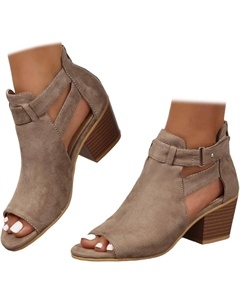 Женские босоножки с открытым носком, летние, с вырезами по бокам, ремешком, молнией, массивным каблуком, без задника, на каблуке до щиколотки, Grey