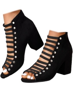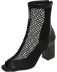Женские ботильоны с открытым носком, сетчатые, на щиколотке, модные, с средним каблуком, летние ботильоны, босоножки на высоком каблуке, гладиаторские ботильоны, Black