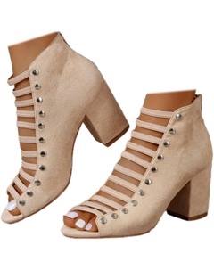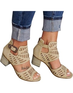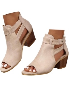 Женские босоножки с открытым носком, вырезами, на высоком массивном каблуке, с пряжкой на щиколотке, летние, офисные, Beige