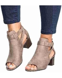 Женские босоножки на каблуке с открытым носком, замшевые с вырезами по бокам, с ремешком на щиколотке и небольшим каблуком, платьевые сзади на молнии, Grey