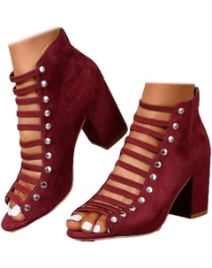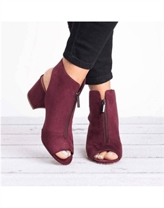 Женские босоножки с открытым носком, летние, с вырезами по бокам, ремешком, молнией, массивным каблуком, без задника, на каблуке до щиколотки, Wine