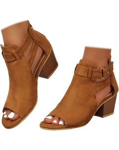 Женские босоножки на каблуке с открытым носком, замшевые с вырезами по бокам, с ремешком на щиколотке и небольшим каблуком, платьевые сзади на молнии, Brown