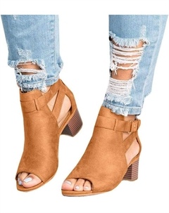 Женские босоножки с открытым носком, ремешком на щиколотке, массивным каблуком средней высоты, туфли на низком каблуке, Khakis