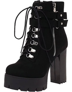 Женские готические ботильоны на платформе с шнуровкой, круглым носком и массивным высоким каблуком, Black
