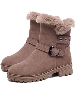 Женские зимние ботинки, зимняя обувь, теплые с искусственным мехом, с круглым носком, низким каблуком, боковой молнией, уличные, противоскользящие короткие ботильоны, Brown2