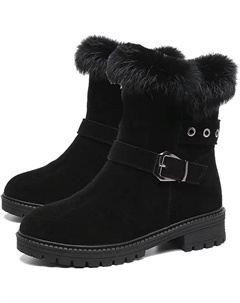 Женские зимние ботинки, зимняя обувь, теплые с искусственным мехом, с круглым носком, низким каблуком, боковой молнией, уличные, противоскользящие короткие ботильоны, Black2
