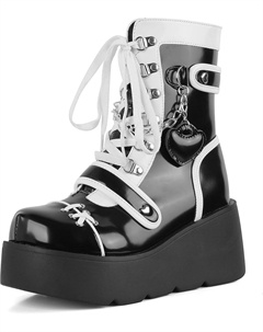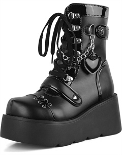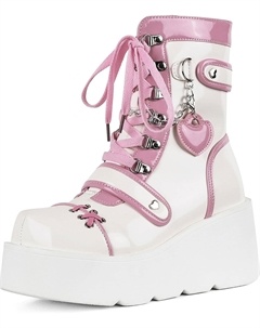 Ботильоны на платформе для женщин, ботинки на танкетке с высоким каблуком, готические, с круглым носком, боевые ботинки, милые с сердечком, на шнуровке, для рейв-вечеринок, уличные ботинки с цепочкой