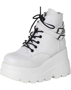 Женские ботильоны на платформе, до колена, высокий каблук, круглый носок, молния, стиль панк, готика, средняя голень, боевые ботинки для женщин, Weißer Keilabsatz