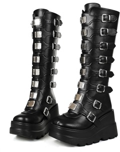 Женские ботильоны на платформе, до колена, высокий каблук, круглый носок, молния, панк, готический стиль, средняя голень, боевые ботинки для женщин, Schwarzer Keilabsatz