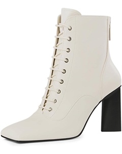 Женские модные ботильоны с квадратным носком, шнуровкой, на высоком массивном каблуке, с задней молнией, повседневные ботиночки для прогулок, размеры 4-16 US, White