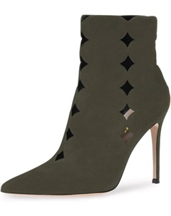 Женские ботильоны, модные с вырезами, заостренный носок, тонкий высокий каблук, на щиколотке, с боковой молнией, шпилька, элегантные для вечеринок и выпускного, размеры 4-16 US, Dark Olive