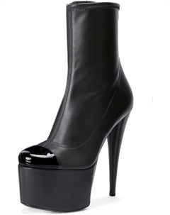Женские ботильоны с круглым носком, боковой молнией и платформой, высокие каблуки-стилет, модная обувь для вечеринок и выпускного, размеры 4-16 US, Black