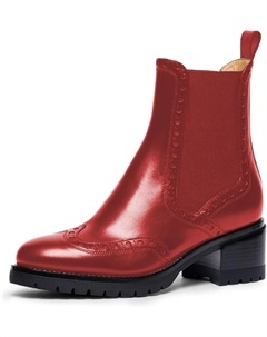 Женские ботинки с круглым носком и крылышками, эластичные челси, на низком устойчивом каблуке, удобные модные ежедневные ботильоны, размеры 4-16 США, Red