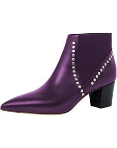 Женские ботильоны с заостренным носком, на щиколотку, с массивным каблуком, заклепки, эластичные по голенищу, модные, размеры 4-16 США, Purple