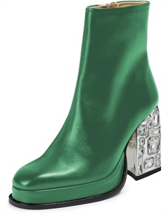 Женские классические ботильоны с заклепками и стразами, высокие каблуки, толстая подошва, на щиколотке, с круглым носком и боковой молнией, стильные для повседневной носки, размеры US 4-16, Green