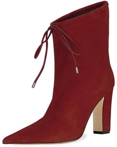 Ботильоны Chunky с круглым носком, короткие ботинки с боковой молнией, высокие каблуки-стилето для женщин, замшевые ботильоны для повседневной носки, работы, вечеринок и танцев, размер 4-16 US, Red