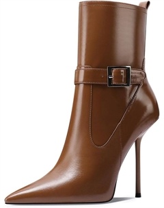 Женские ботильоны с заостренным носком, на массивном высоком каблуке, короткие ботинки с заклепками и боковой молнией, размер 4-16 US, Brown