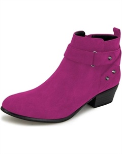 Женские ботильоны с круглым носком, на низком каблуке-блоке, с заклепками и боковой молнией, повседневная уличная обувь, размер 4-16 US, Fuchsia
