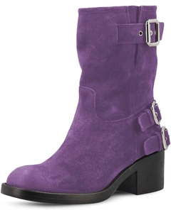 Женские ботильоны с круглым носком, регулируемой пряжкой, низким квадратным каблуком, удобные повседневные короткие ботинки, размеры 4-16 US, Purple