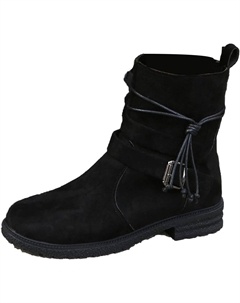 Женские замшевые ботинки с круглым носком, большой размер, невысокий каблук, противоскользящие, повседневные, для улицы, осень-зима, короткие ботильоны на боковой молнии, Black
