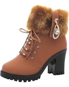 Женские зимние замшевые ботинки с круглым носком, праздничные ботильоны на высоком каблуке, противоскользящие, модные осенние теплые плюшевые ботинки до щиколотки, Brown