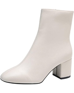 Женские Ботинки, Классические Элегантные Ботинки с Толстым Каблуком, Надевные, Удобные, Большого Размерa, Повседневные Ботильоны, White