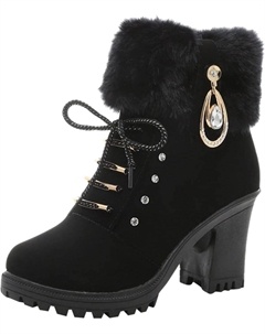 Женские зимние замшевые ботинки с круглым носком, праздничные ботильоны на высоком каблуке, противоскользящие, модные осенние теплые плюшевые ботинки до щиколотки, Black