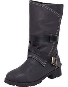 Женские винтажные ковбойские сапоги с середины голени, удобные повседневные ботильоны, противоскользящие западные ковбойские ботильоны на платформе, Black