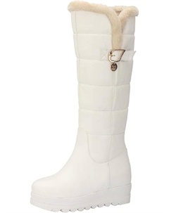Женские высокие зимние сапоги до колена с водонепроницаемой подкладкой из искусственного меха и флисовой внутренней отделкой, теплые повседневные ботильоны, White